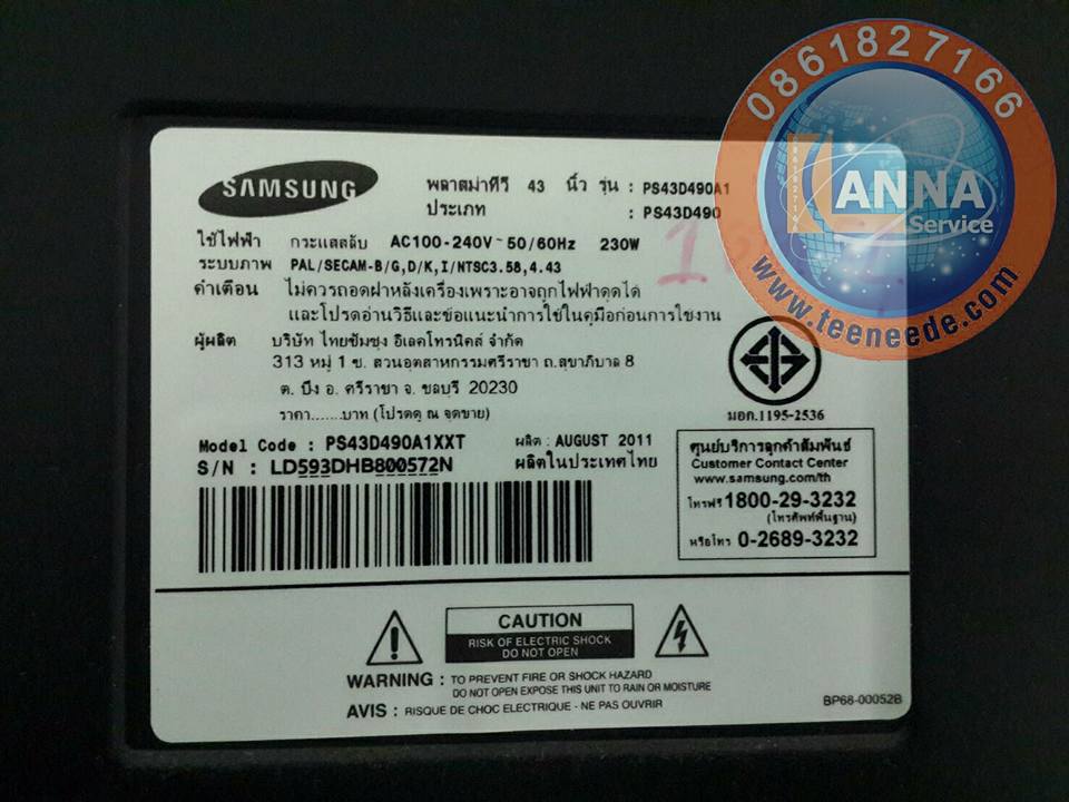 Samsung PS43D490A1 อาการเปิดไม่ติด ตรวจเชคชุดYmainเสียมีอุปกรณ์ซอตอยู่ครับ ปิดงานซ่อมเปลี่ยนอะไหล่ครับ ลานนาเซอร์วิส ถนนสนามกีฬา 053-211328, 086-1827166 เปิดจันทร์-เสาร์ครับ บริการซ่อม lcd led plasmatv ทุกยี่ห้อทุกอาการเสียครับ