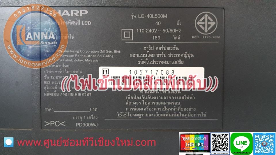 -SHARP 40นิ้ว LC40L500M ((ไฟเข้าเปิดสักพักดับ))