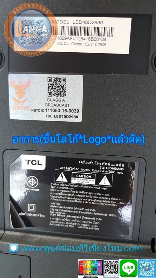 -TCL 40นิ้ว LED40D2930 อาการ#ขึ้นโลโก้แล้วดับ