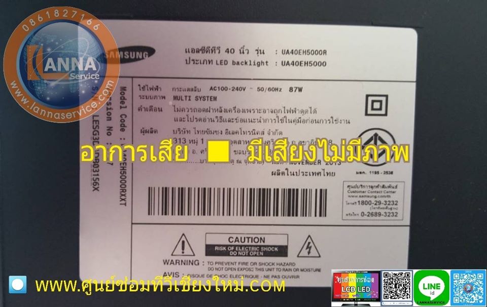 >Samsung40นิ้ว รุ่นUA40EH5000 #อาการมีแต่เสียงไม่มีภาพ