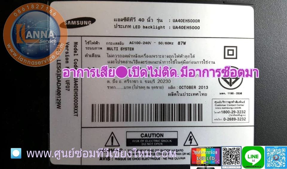 >Samsung 40นิ้ว รุ่นUA40EH5000 อาการ●เปิดไม่ติด.มีอาการซ๊อตมา