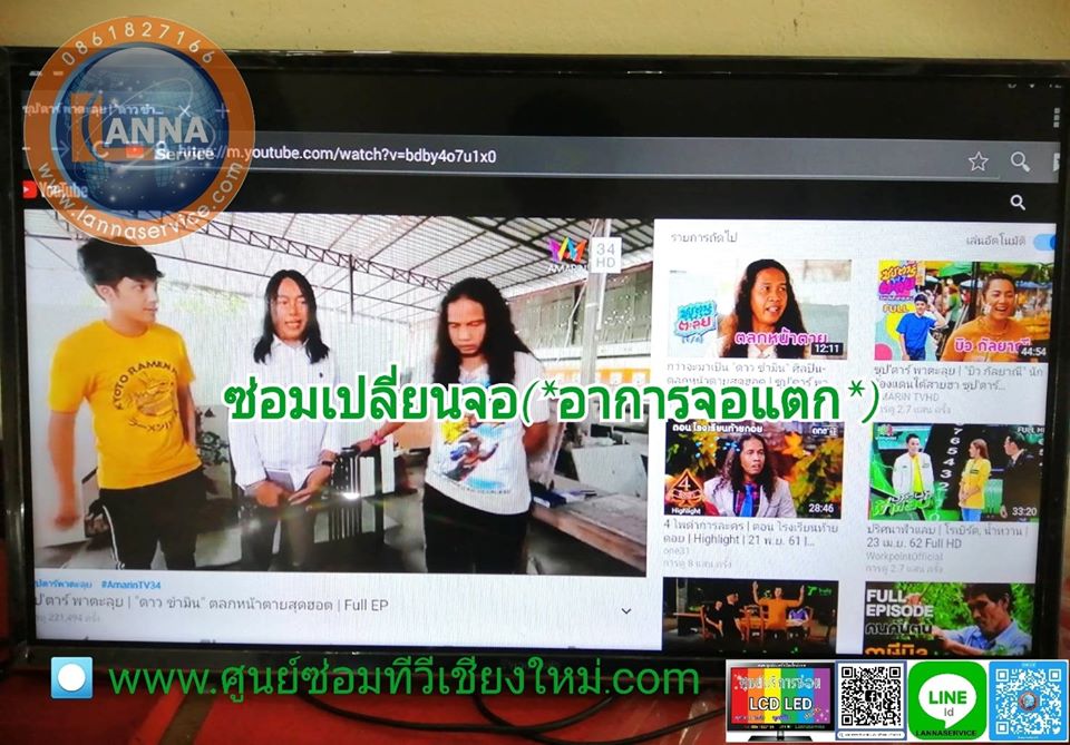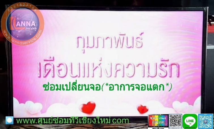 ลานนาเซอร์วิส 086-4416636,086-1827166, 053-211328 *บริการงานซ่อม* Lcd TV, Led TV, Plasma TV, TV Projecter, จอMonitor, จอคอมพิวเตอร์ ทุกยี่ห้อ ทุกอาการเสีย *เช็คราคาก่อนส่งซ่อม ทางร้านมีมาตราฐาน ประเมินราคาก่อนซ่อมทุกเครื่องได้ครับ * ซ่อม จอภาพสีเพี้ยน, จอภาพไม่ติด, จอภาพเป็นเส้น, จอภาพขาว, ภาพมืด, ภาพไม่มีสี , ไฟไม่เข้า, จอติดๆดับๆ , เครื่องไม่ทำงาน, สั่งงานรีโมทไม่ได้, เครื่องไม่มีเสียง, มีเสียงแตกบี้, จอภาพเป็นเส้นแนวตั้ง, จอภาพเป็นเส้นแนวนอน และทุกอาการเสีย ทุกยี่ห้อ