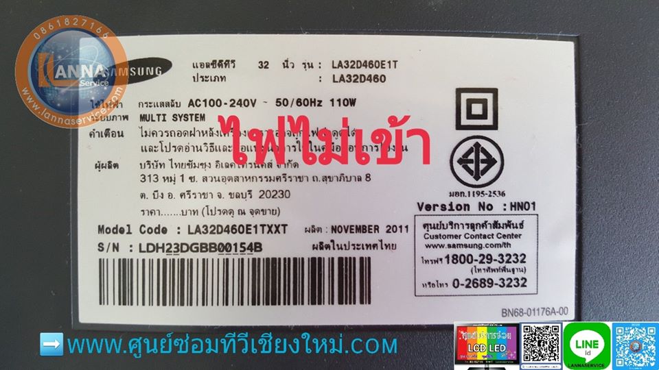 >Samsung _LA32D460 -ไฟไม่เข้า