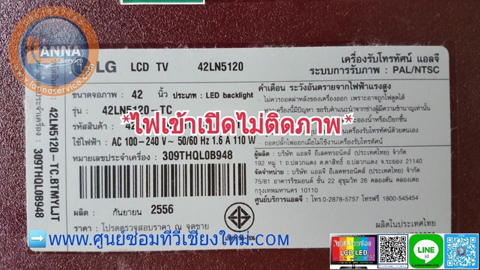 สินค้า ใน -LG_42LN5120-อาการเสียไฟเข้าแต่เปิดไม่ติดภาพ (0 ชนิด)