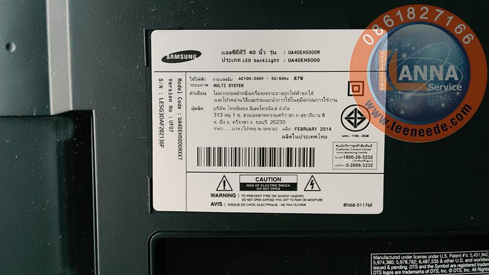 Samsung UA40EH5000R อาการภาพเป็นเส้นๆครับ สาเหตุเกิดจากตัวจอ panelเสียครับอาการนี้ซ่อมไม่ได้แต่เปลี่ยนจอใหม่ให้ลูกค้าครับ ไม่ต้องซื้อเครื่องใหม่ ราคาลูกค้ารับได้ ลานนาเซอร์วิสบริการซ่อจอภาพทุกอาการเสีย ทั้งแนวนอน แนวตั้งเป็นเส้นๆ ภาพพับริ้วๆ จอขาว เปลี่ยนฟิมล์ม สอบถามข้อมูลเพิ่มเติมได้ที่086-1827166,053-211328 ขอบคุณครับ