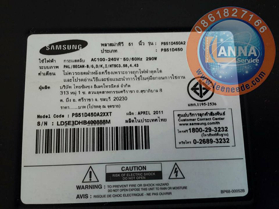 Samsung PS51D450A2 อาการไฟstandby ติดแต่สั่งงานเปิดภาพไม่ออกครับ ตรวจเชคเทสจอ panel ทำงานแสง สี ออกปกติ ปิดงานพบ main บอร์ดเสียครับ เปลี่ยนแผงใหม่ให้ลูกค้าครับ ภาพสวยคมชัดใช้งานได้ปกติครับ ลานนาเซอร์วิส บริการซ่อม led lcd plasma TV ทุกยี่ห้อทุกอาการเสียครับ